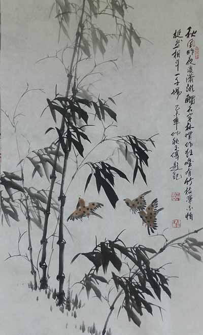 ,受到公司领导热情接待。图为王玉伟即兴创作《花开富贵》。(办公室冯继宏)